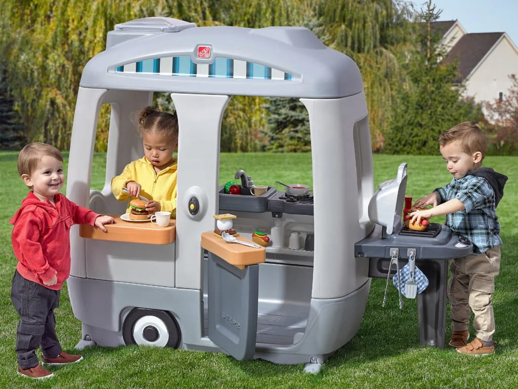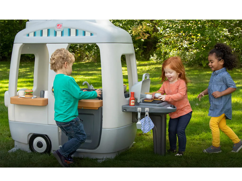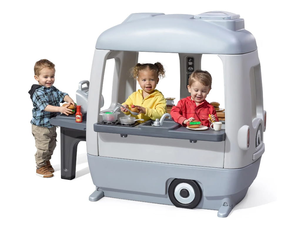 The Step2 food truck is a unique pretend play set that turns any space into an adventure. With its vintage design and neutral colors, it fits perfectly in backyards as well as indoor play areas, offering children endless hours of creative fun.