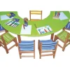 The chairs are optional. The frame is made of wood baked excellent quality beech, polished to the natural color of wood. The legs will have a round cross section. The lid is made of synthetic wood M.D.F lined with beech lacquered in colors of your choice. There is the possibility that the lid has formica coating in different colors. All the ends of the table are rounded and harmless for children. In soles bring planted elastic pads for silent moving and protect the flooring. Varnishes and paints used are water, non-toxic and environmentally friendly. Dimensions: 184 x 92 x 56 cm high. P>