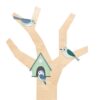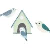 Decorative birds with house are combined with the wall tree with code (183518). They are made of high quality plywood with a magnet. Very durable and safe for children, they offer a happy and safe solution for decorating nurseries and kindergartens.