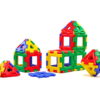 The geometric building set is an educational toy for children aged 2 years and up, ideal for introducing them to the world of shapes and construction. The set includes 40 large pieces (20 squares and 20 equilateral triangles) in 4 bright colors, as well as an educational poster, offering many possibilities for creative play.