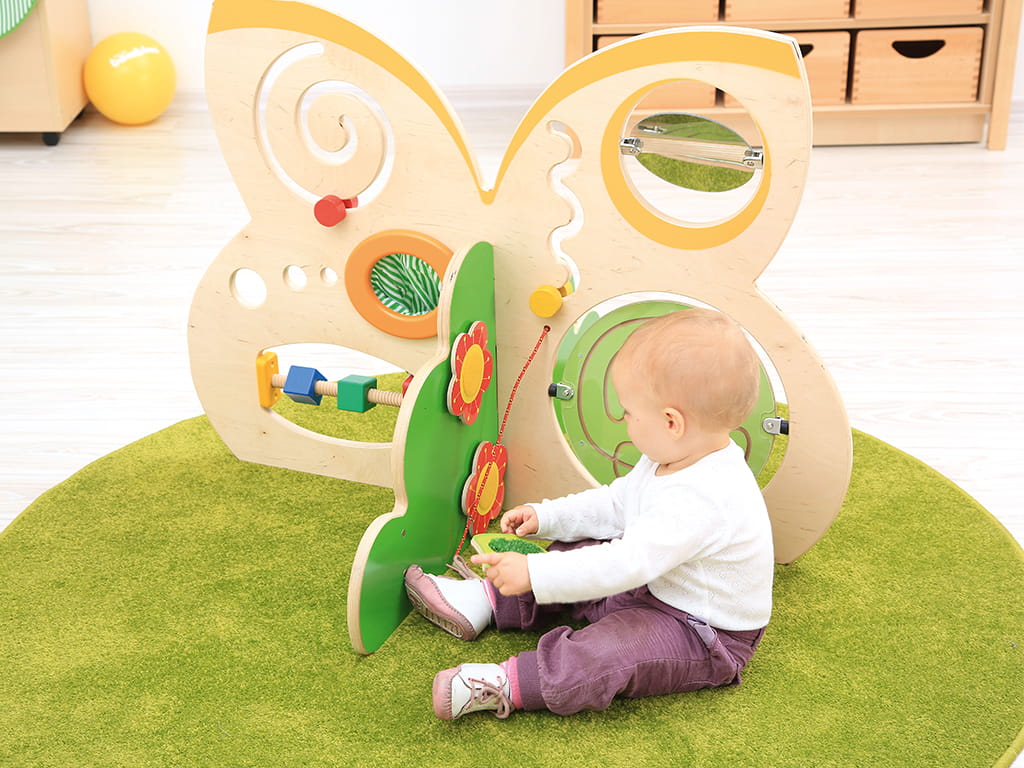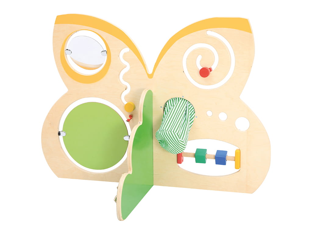 - Multifunctional wooden activity corner in butterfly shape