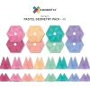 With hexagons and triangles in 8 unique pastel shades, this pack encourages children to explore geometry, shapes, lines, angles, dimensions (length, width, radius), fractions, 2D and 3D shapes through play.