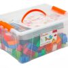 120 pieces in a plastic toy box to create various structures. Develops fine motor skills.