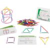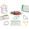 Skeletal geo construction develops skills such as creative thinking, problem solving, fine motor skills and learn geometric shapes as well as building 2D and 3D constructions. With straight and curved pieces that snap together very easily. Ideal aid for schools and therapists. Includes 60 white connecting balls, 240 sticks (50 of 3.3cm, 5.3cm, 6.9cm, 30 of 8.2cm, 10.5cm, 12.5cm), 30 quarters and 20 2-sided activity cards, in a plastic box. Age: 7 years and up.
