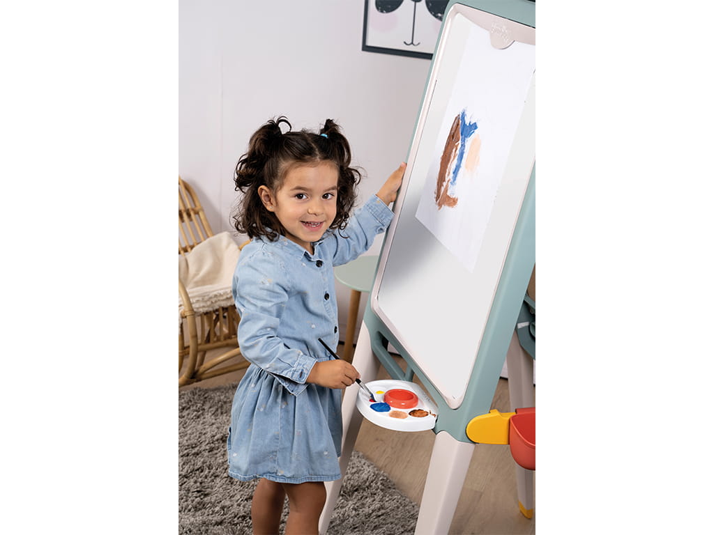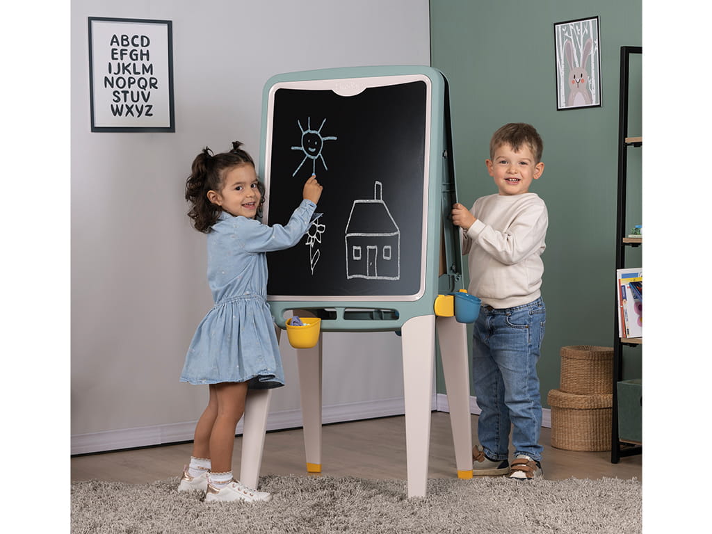 The easel folds easily for space-saving storage and comes with 13 accessories that enhance children’s creativity. At the same time, it is a more environmentally friendly choice, as it is partly made from recycled plastic.