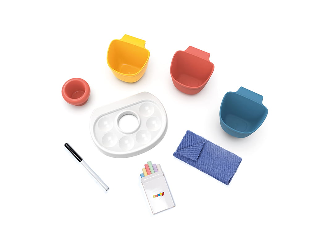- Includes 13 accessories (marker, chalks, containers, palette, cleaning cloth)