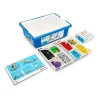 - Plastic storage box and sorting trays with colored areas for easy classroom management