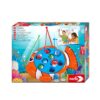 Fishing board game. Just throw the rod and catch one of the colorful fish with luck and skill. Whoever collects the most fish is the winner. This toy will keep kids happy and entertained while improving their perception, hand-eye coordination and motor skills. Made of plastic material. It is played with 2 to 3 players and is suitable for ages 3 and up.
