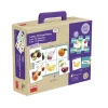 Healthy food cards. Lotto with 72 different foods to work on matching them in two ways: picture to picture, or picture to word. Up to 12 children can play. Contains: 12 sheets, 72 tabs, 72 food name stickers and educational guide. Age: 3 years and older