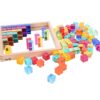Set includes 100 colored acrylic cubes and beech wood tray with acrylic mirror and plywood base.