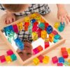 Ideal for sensory integration play and learning activities such as sorting and mixing colours, patterns, counting and learning reflexes. For younger children, the cubes can be used to build towers or to create patterns and pictures. For older children, the set inspires independent play and could be used for math activities.