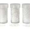 Glitter flakes that can be used for decoration. Use for snow effects on cardboard, wood, etc. 3 different designs in jars.