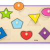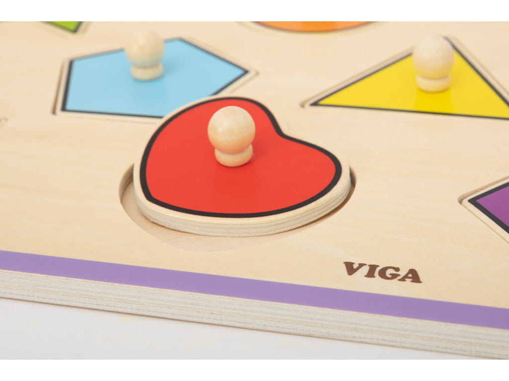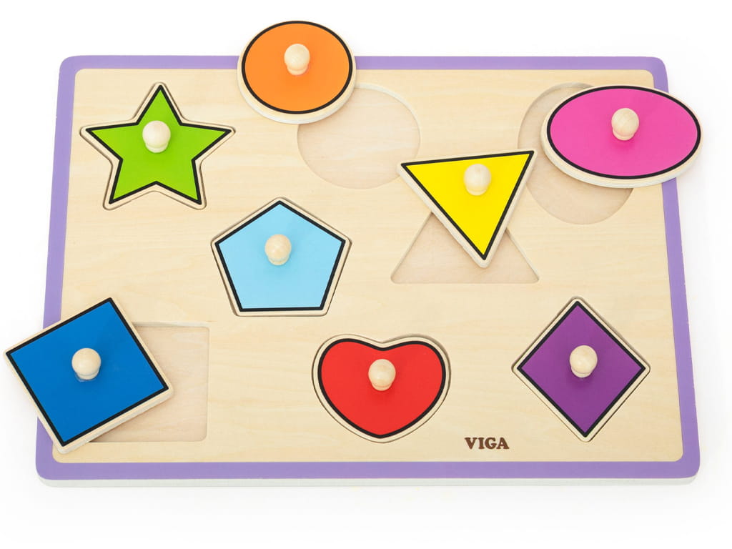 This wooden shape peg set is an ideal toy for young children who want to learn through fun. It consists of 8 pieces with bright colors and wooden handles, making it easy to place and reposition the pieces correctly on the wooden base.