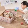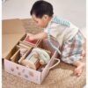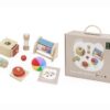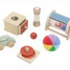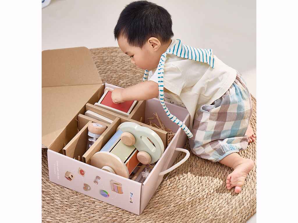 The discovery box, measuring 35 x 29 x 9.5 cm, offers babies the right toys to develop their senses, strengthen their motor skills and discover the world in the most natural and fun way.