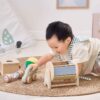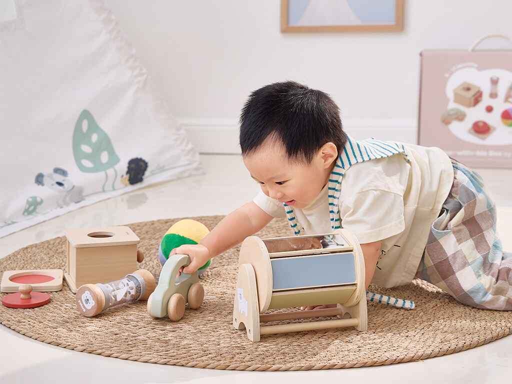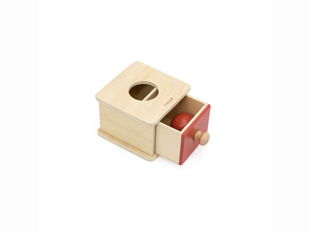 A special activity of the set is the game with the ball and the drawer. The baby learns that, although the ball disappears in the drawer, he can find it again, thus strengthening the understanding of the permanence of objects and helping him to cope with separation anxiety.