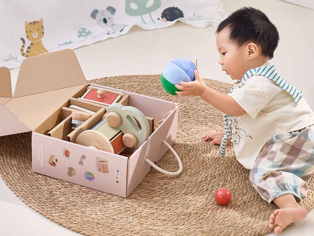 At this age, babies begin to explore their surroundings through touch, grasp, grip and taste. They learn to recognize people, play with objects, make sounds, sit, crawl, stand and, eventually, take their first steps. Play is their primary method of understanding the world, and the Discovery Box is designed to support this exciting process.