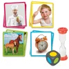 Cards guess what I am. Roll the dice and pick up the corresponding color card. Don’t show it to anyone, turn the hourglass upside down. Whoever manages to guess what you represent before time runs out gets to keep the card. The winner is the person with the most cards. Contains: 70 cards, 1 die and an hourglass. Card measures 9 x 8 cm Ages 3 and up