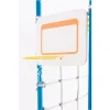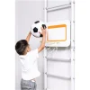 Through the game, children learn to use all the muscles of the body, not only the arms, but also the legs, torso and back, thus improving their strength, balance and accuracy. The hanging basketball can be easily placed on the steps of a children’s gym ladder or multi-bars, transforming the sports area into a small basketball court.