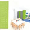 Soundproof insulation for suspension from the ceiling, with holes, made of 0.8 cm thick felt. Allows partial separation of space in the room (eg workstation or playground) and noise reduction. Available in uniform version and equipped with 56 holes with a diameter of 2 cm. Code. 111452, 111453 & 111455. Color: green. Dimensions: 60 x 180 cm.