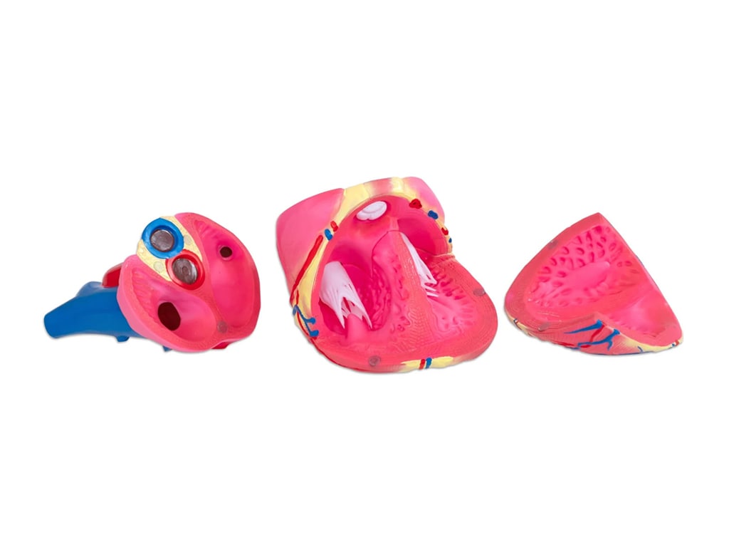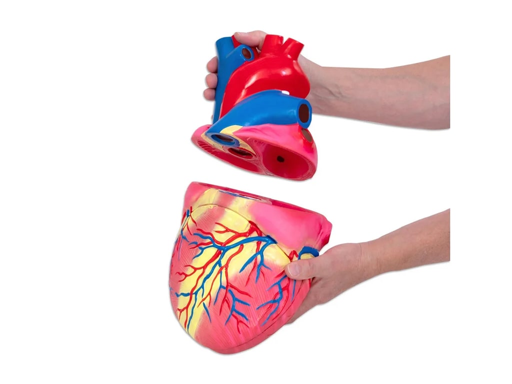 The 37 x 20 x 27 cm heart model is an excellent visual aid for teaching human cardiovascular function. It is made of durable plastic and comes with a stand for stable placement and easy presentation. The model is divided into 3 parts, offering a complete internal view of the heart, with the main anatomical structures such as the atria, ventricles and great vessels visible. The magnetic connection allows for easy assembly and disassembly of the parts, without wear, ideal for frequent use in educational environments.