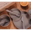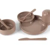 Individual tableware, consisting of 7 pieces. Ergonomically shaped and the perfect size for children learning to eat and drink on their own. Includes a multi-functional plate, bowl, glass with lid and cutlery set. It can be used from the child’s first meal. From bio-based material. 100% recyclable. It does not contain harmful substances. Approved for food. Absolutely safe. Dishwasher safe up to 70 °C. Suitable for use in a microwave oven. For long use. Color: Mocha. Dimensions: Bowl: 11 x 4.5 cm Glass: 7 x 10 cm Age: 0 and up