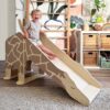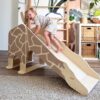 Indoor giraffe slide. Ideal for nurseries and kindergartens as it is completely safe for small children. Made of high quality wood, with rounded edges, large legs that make it very stable, steps perfect for little feet and with a soft finish. Dimensions: 139 x 75 x 59 cm Age: 2 years and older.