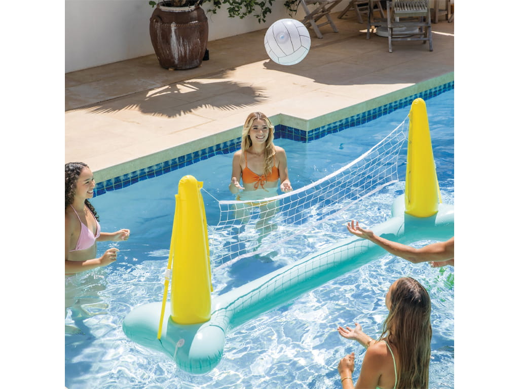 Upgrade your pool experience with INTEX’s inflatable volleyball game and enjoy endless hours of fun.