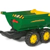 Trailer with two axles, and a large sturdy tipping double axle. Combines with tractors with CODE. 232768 & 238569. Weight: 5.8 kg. Dimensions: 89 X 43 X 45 cm. Age: 3-10