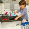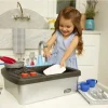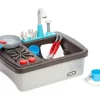 Functional sink. Water is released from the tap pushing the pump down. Storage for accessories. A variety of accessories, such as dishes, pans and other kitchen utensils. Operates without batteries. Age: 3+
