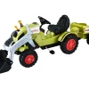 The claas tractor loader with trailer from BIG is an excellent choice for young agricultural enthusiasts. Made of durable, high-quality plastic, it offers unlimited durability and long-term use. With an ergonomic, aerodynamic design, it ensures correct body position for comfort and safety during use. The precision chain drive facilitates movement, offering smooth and safe driving. The seat has a high backrest for extra support and can be easily adjusted to adapt to the child’s height and needs. The trailer allows for the transport of small loads, enhancing imagination and play.