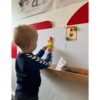 The toy is made of durable wood and painted with safe colors, offering durability and safety during use. It is ideal for creative play at home, in kindergarten, or in educational activities that combine learning and fun.