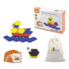 Children can create various figures and designs, either using their imagination or by following the 15 cards with 30 suggested designs included in the set. In this way, they practice logical thinking, concentration, and creativity, while also becoming more familiar with geometric shapes, volume, and basic measurement concepts.