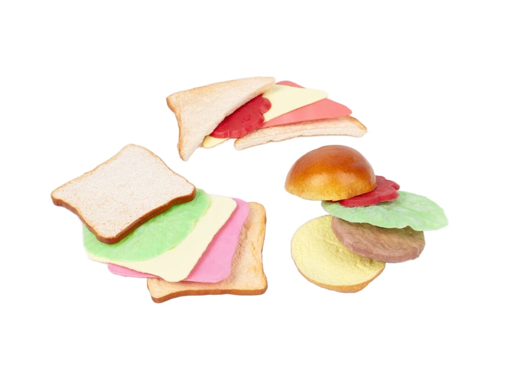The Make a Sandwich set consists of 15 pieces and is ideal for role-playing and creative activities. The pieces of the set are made of high-quality and durable plastic material, ensuring long-term use without damage. They are non-toxic, making them completely safe for children. The set includes all the necessary ingredients to make the perfect sandwich.