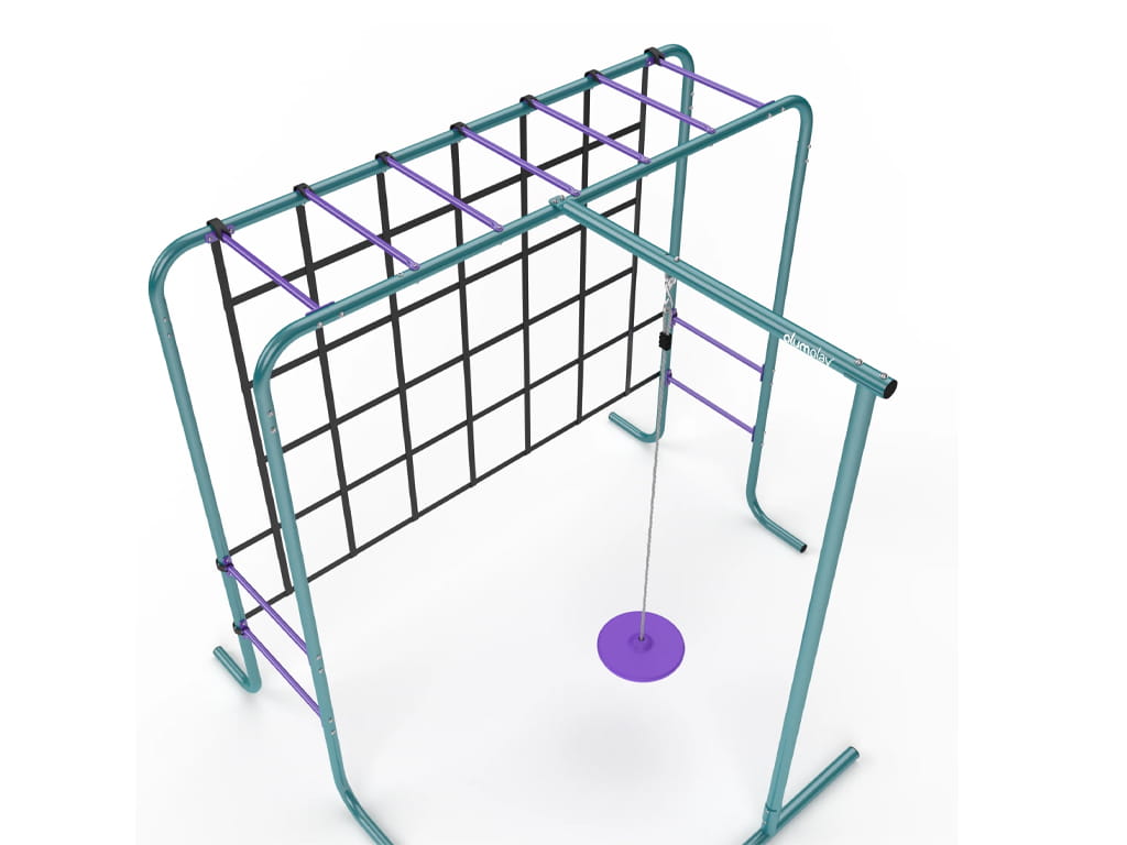 The monkey bars help develop strength, coordination, and confidence, while the swing with a comfortable seat provides enjoyable motion. The climbing net adds an extra challenge, enhancing balance and mobility. The anti-slip and anti-rotation bars increase safety during play, while the overall construction is designed with stability and durability in mind.