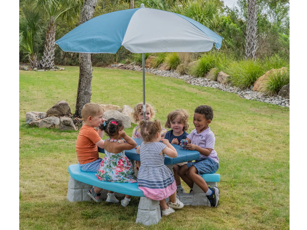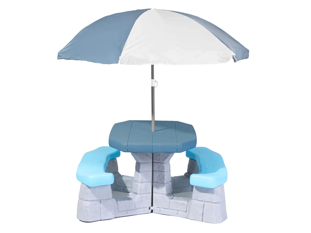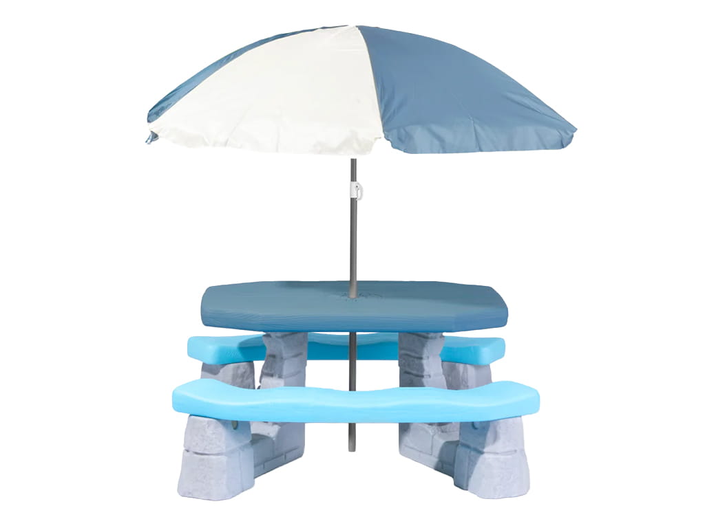 The Step2 6 seater picnic table, provides toddlers and preschool children with a spacious and safe area for play, snacks, or creative activities. With seating for up to 6 children and a removable Ø152.4 cm umbrella, it offers comfort and sun protection for outdoor spaces, while the neutral color palette and realistic details blend harmoniously into any play area or backyard.