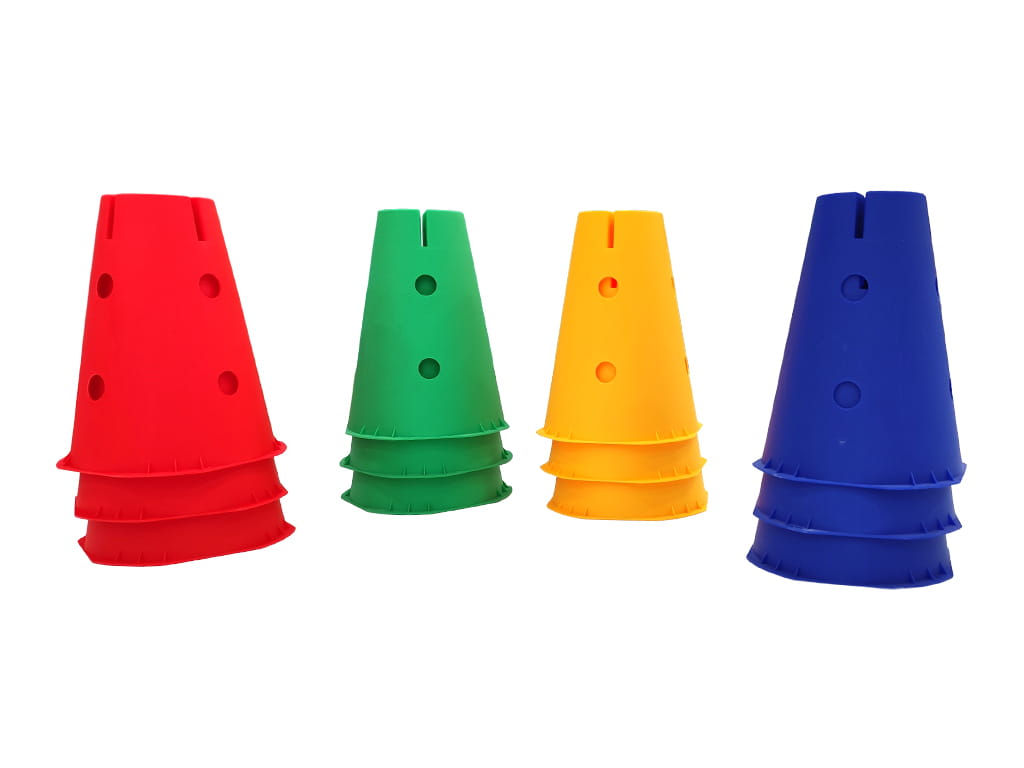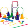 The set allows the creation of polymorphic paths, obstacles, and targets, adapted to different skill levels and ages. Children can crawl under bars, balance on beams, jump from support blocks, pass through hoops, or combine various challenges, enhancing mobility, agility, spatial awareness, and self-confidence.