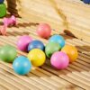The set includes 14 wooden balls in 7 different rainbow colors (2 of each color) with a diameter of 5 cm