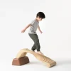 The path is made of high quality plastic. With a special twist design, it makes the two ends slope in opposite directions. No flat sides creates challenges for children when climbing up and down, which requires children’s attention and focus. Alternating the position of the Base creates three different heights and slopes. The ripple pattern not only provides sensory stimulation to the feet, but also provides better grip while walking on the trail. The stand can be placed under the path for easy storage. Maximum weight: 60 kg. Age: 3+ Dimensions: base 51.2 x 25.8 x 17 cm. path: 95 x 41.2 x 27.5 cm.
