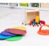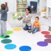 Round EVA foam pads are versatile and ideal for nurseries and schools. They are easy to clean (do not wash) and come in a handy zipped storage bag. They are suitable for exercise, play or the daily morning cycle. They stand out for their vivid colors and their practicality as they are very light and have a notch that makes it easier to hold them. One side is smooth and the other textured and both offer stability, preventing children from slipping.