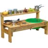 Suitable for indoor and outdoor use, the rustic-looking wooden kitchen is a great choice for role-play. Made of high-quality wood, the kitchen features a practical shelf for storing utensils, a large plastic basin that doubles as a sink, and designed eyes and buttons on the wood, offering realism and endless hours of creative play. Through role play, children develop social skills, creativity and imagination. In addition, interacting with others in this environment enhances communication and cooperation, making the wooden kitchen a valuable tool for children’s all-round development.