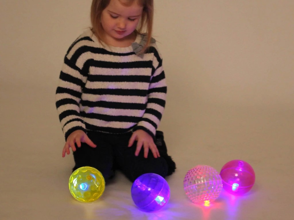Balls sensory light. Suitable for children of all ages. Illuminated when traveling. Ideal for a child’s hand. Suitable both for indoor and for open spaces. Set 4 pieces. Diameter 10 cm. P>