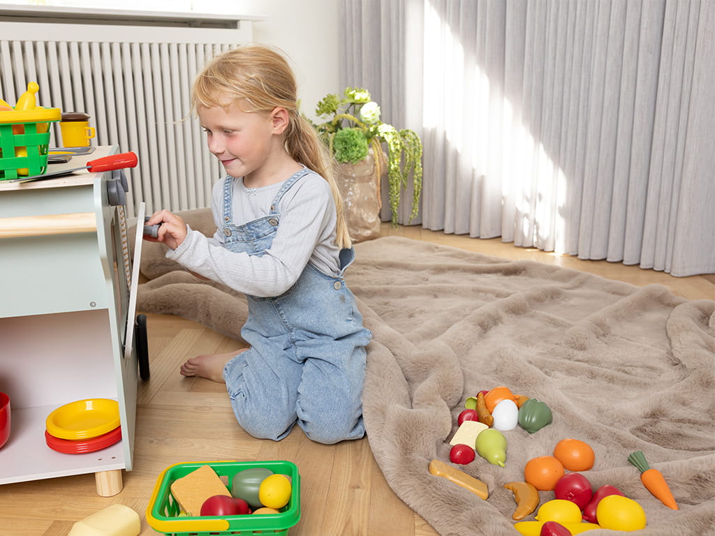 The set is ideal for playing café, restaurant, or picnic, where children can serve friends, family, or their favorite stuffed toys. Through role-play, imagination, social skills, and creative expression are encouraged, while children have fun learning.