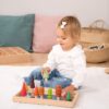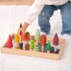 Set of wooden forest trees with simple shapes and a smooth surface, in 10 tonal shades of brown, green, red, orange and yellow. The set is ideal for doll houses, talking about the natural world and learning about similarities and differences. Includes cotton storage bag with drawstring. Combines with the Forest play mat code 265110.
