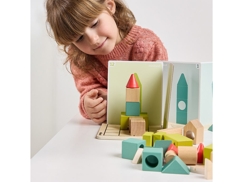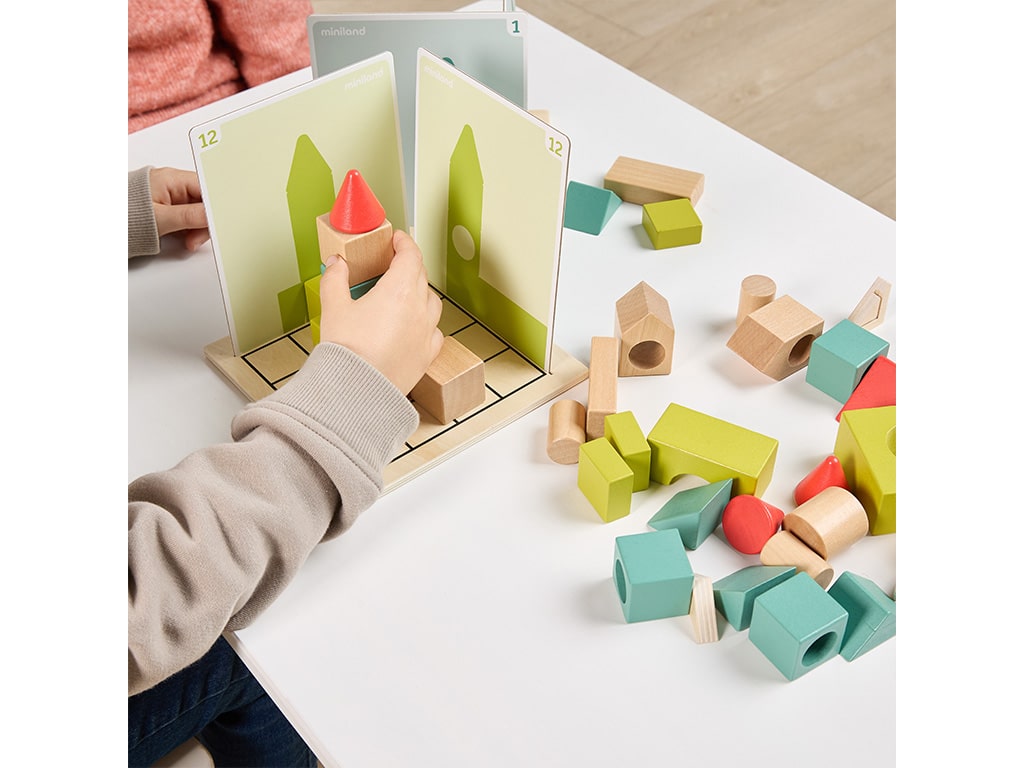 The Shape Makers Construction Set is an exciting multiplayer game that challenges your spatial skills. The aim of the game is to build three-dimensional structures using wooden pieces while recreating 2D images on your board. Suitable for up to 4 players, Shape Makers includes 24 progressive challenges that promote logical thinking and spatial orientation.