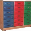 Made of synthetic MDF board with beech coating, polished to the natural color of wood. It has 18 individual drawers for storing infants operations which are decorated with wavy Lukacs and etiketothiki with space for sticker, engraved into precision electronic device. There is the possibility drawers carry wooden badge (to distinguish one infant in the drawer). All edges are rounded and harmless for children. Paints and varnishes used are water, non-toxic. Dimensions: 105 x 40 x 83 cm. Net internal drawer dimension: 29,5 x 35,5 x 9 cm. P>