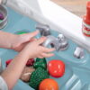 The toy encourages cooperation, storytelling, and problem-solving, while the ample storage—shelves, hanging utensil rack, and recycling bin—helps children keep accessories organized after play. The set includes 22 pieces, such as plates, cups, cutlery, pots, and pans. Adult assembly is required according to the manufacturer’s instructions.