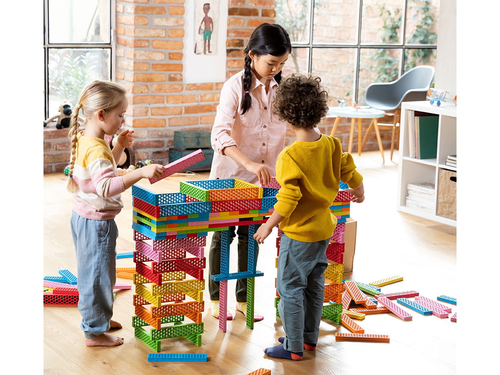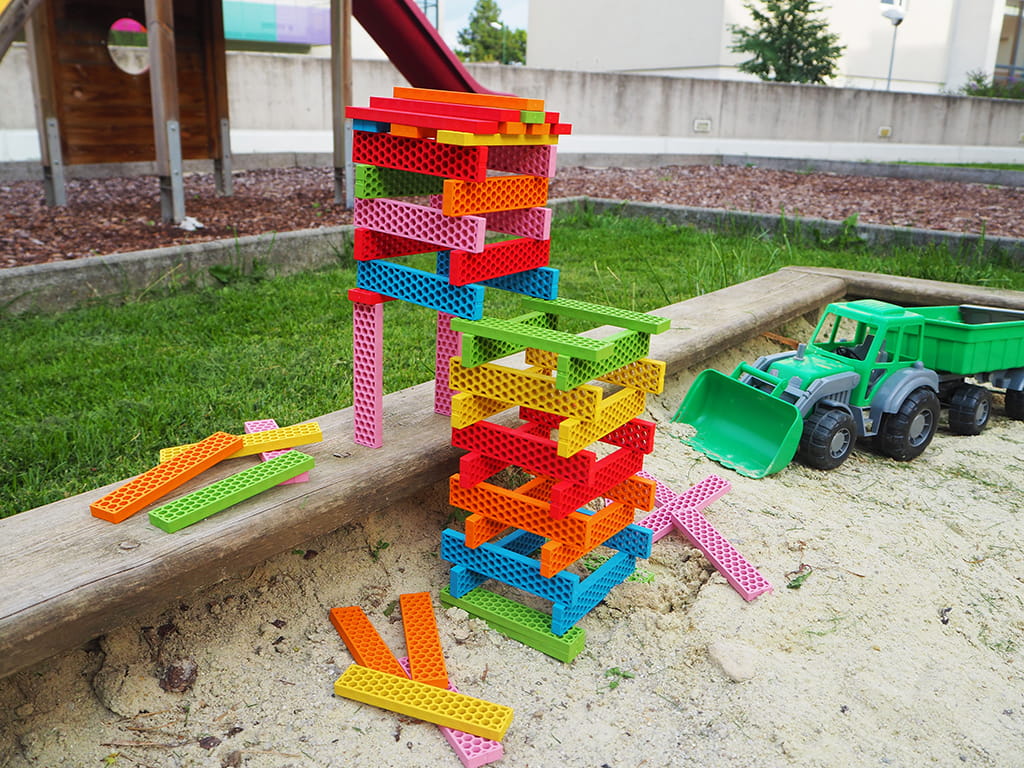 Made from recycled and washable plastic, the blocks are safe for young children and enhance imagination, fine motor skills, spatial orientation, and problem-solving abilities. Suitable for children aged 3 and up, it offers endless building possibilities, encouraging creativity and learning through play.