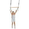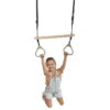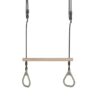 The bar swing with gymnastic rings is designed for fun, exercise, and skill development in children. The rotating bar enhances dynamic movements during training, offering a more demanding and effective workout. It features a durable black braided rope, a wooden bar, and high-quality grey plastic rings (PP), providing stability and safety during play.