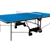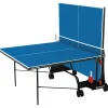 Outdoor ping pong table. Intended for indoor and outdoor use. Permanently mounted net Locking mechanism. SMS (Smart Manual System) that allows the tops to be opened with a single movement Possibility of individual training. Round tube frame diameter: Ø25 mm. Built-in storage cases for rackets and balls.