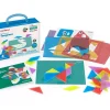 Tangram transparent with recognizable shapes, in 4 colors 7 shapes each (5 triangles, 1 square, 1 rhombus) made of transparent plastic material. It will help children develop logical and critical thinking, spatial awareness and problem solving. Can be used on light tables and panels. Includes 6 translucent cards, 28 shapes and construction booklet. Age: 3 years and older.